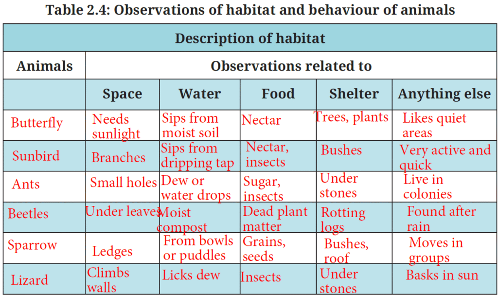 Answer: I understood that all animals need food, water, shelter, and space. If we protect their habitat, they help us in return, like birds controlling insects and butterflies helping in pollination.